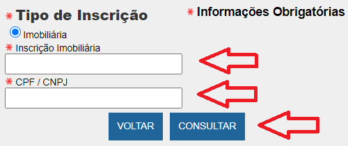 - Em seguida, informe a inscrição imobiliária e o CPF